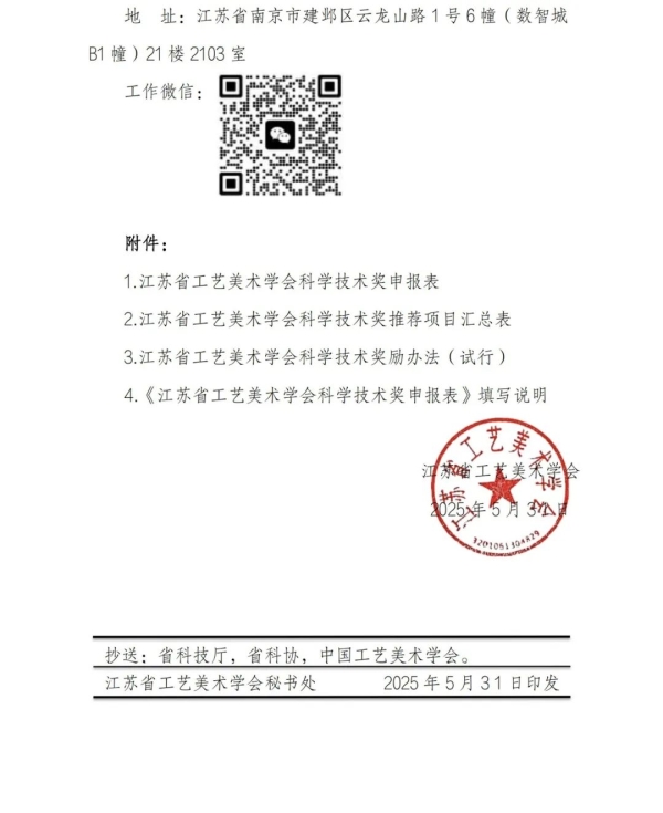关于申报2022—2024年度江苏省工艺美术学会科学技术奖的通知