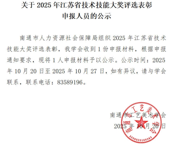 关于2025年江苏省技术技能大奖评选表彰 申报人员的公示