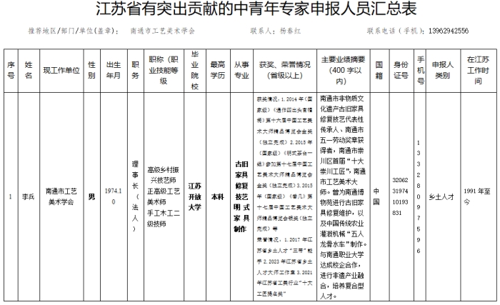 关于2025年江苏省技术技能大奖评选表彰 申报人员的公示